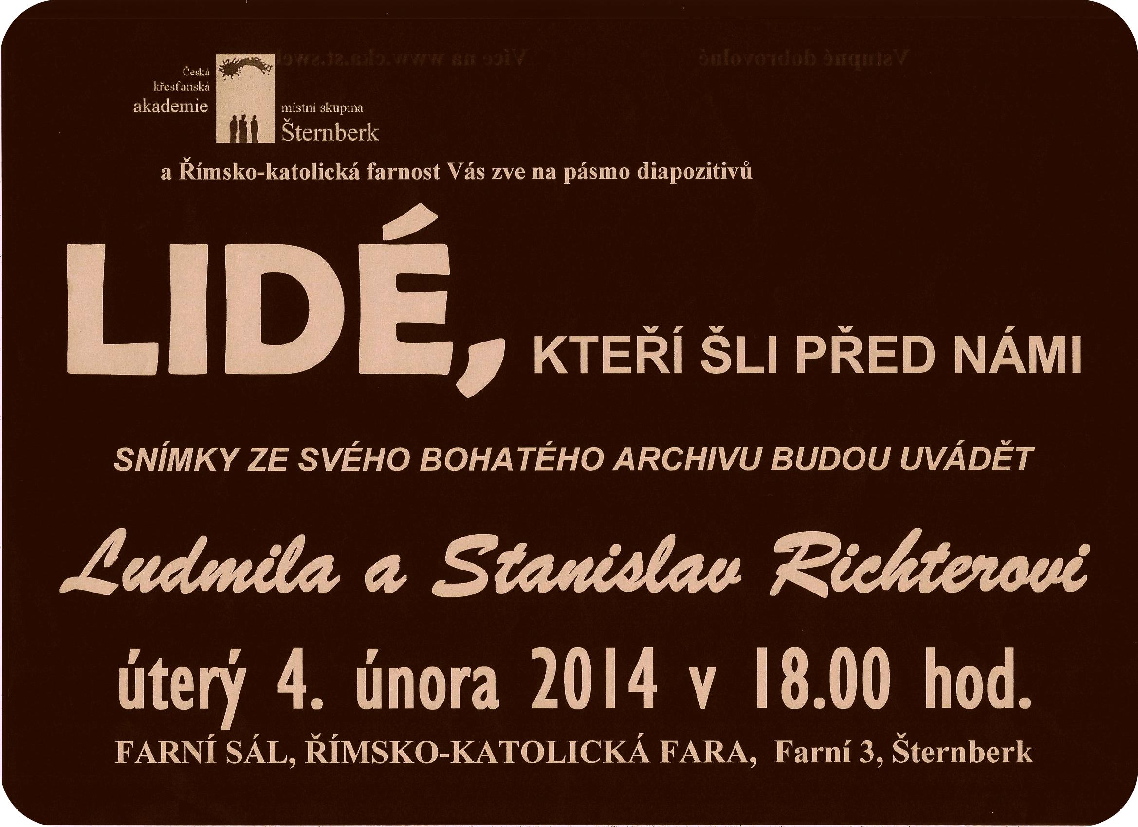 04. 02. 2014, vzpomínkový podvečer s manžely RICHTEROVÝMI a jejich fotografiemi z archivu.